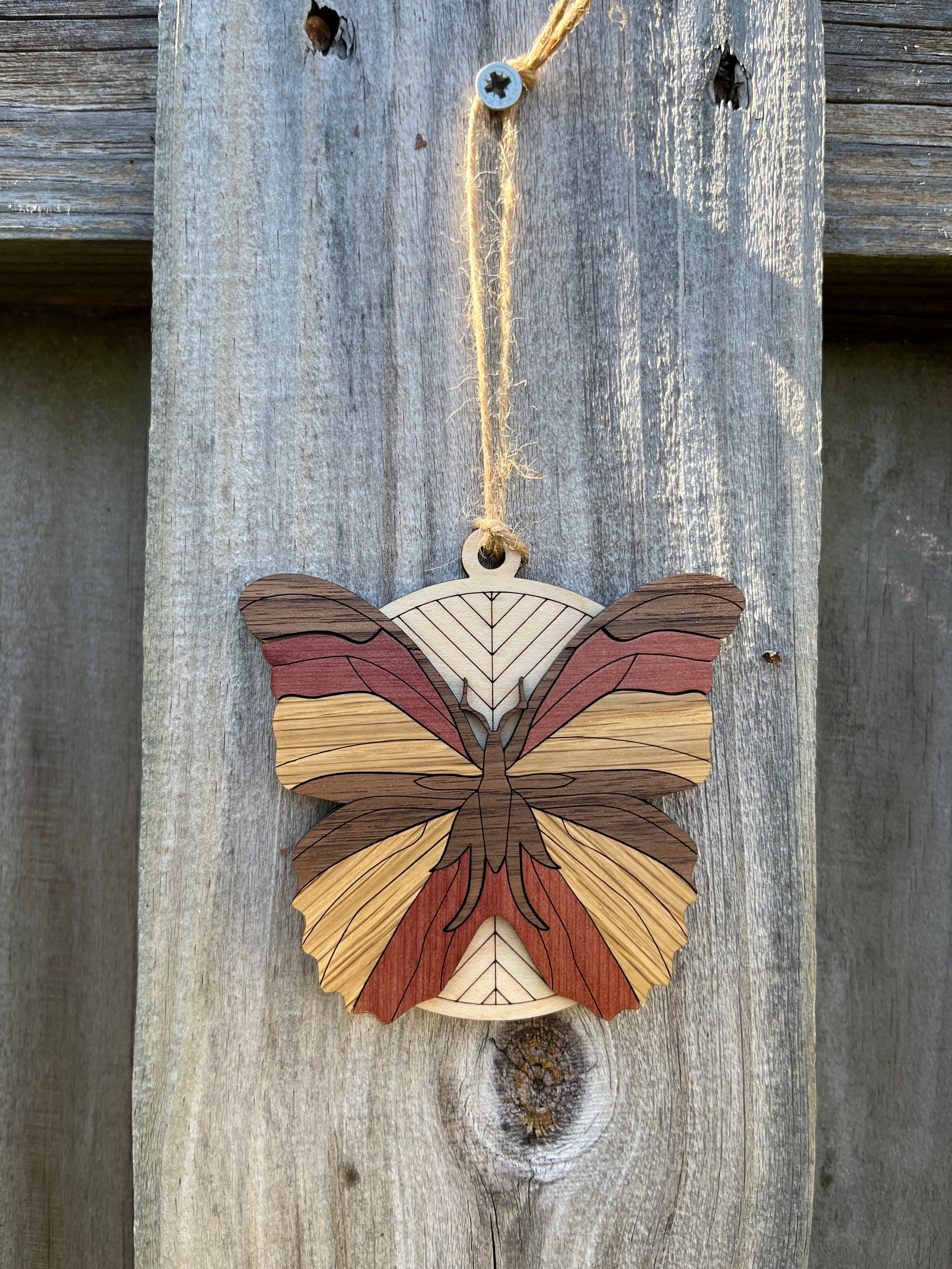 This delicately crafted 4-inch, two-layer ornament beautifully captures the elegance of butterflies, making it an exquisite addition for Christmas trees or year-round decoration. Expertly made from premium maple, cedar, and walnut, its rich wood tones bring warmth and refinement to any setting.