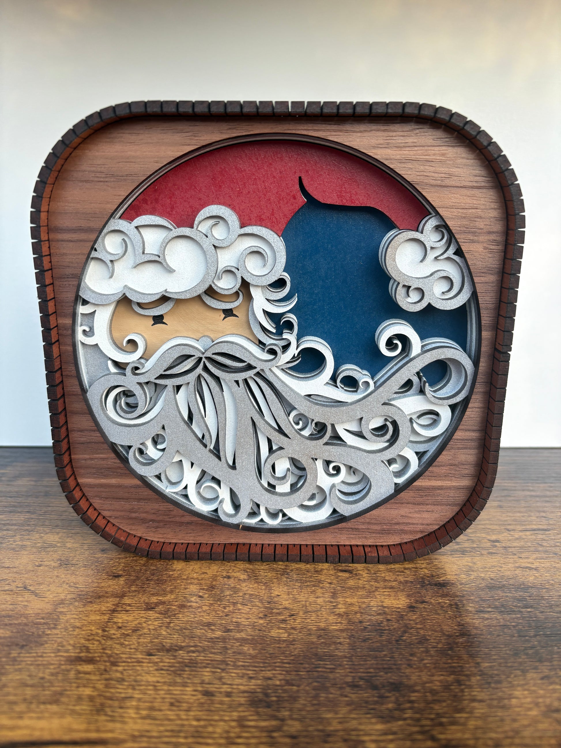 Bring the holiday cheer to any room with this Santa Shelf Sitter! Crafted from 6 layers of wood featuring a natural live edge, it adds a warm, rustic touch to your decor. Standing 5.75 inches tall, this playful figure captures the joyful spirit of the season, making it perfect for mantels, shelves, or holiday displays. Add a festive smile to your home with this charming Santa companion!